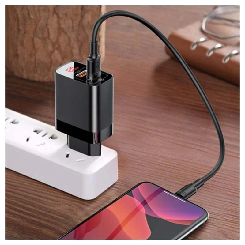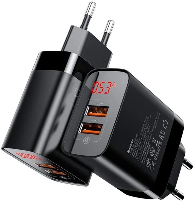 روی شارژر بیسوس، نمایشگر دیجیتالی به کار رفته است. هنگامی که شارژر دیواری در حال استفاده باشد می تواند میزان جریان و ولتاژ خروجی را نشان دهد. در اینصورت شما در هر لحظه میزان جریان ورودی به گوشی خود را می توانید مشاهده نمایید.
