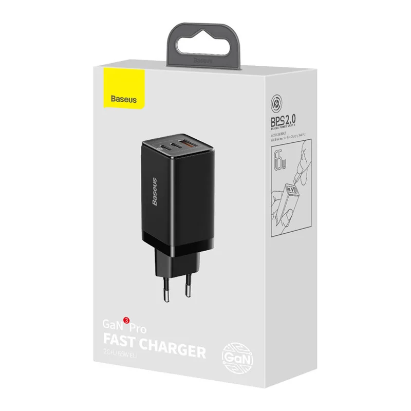 بیسوس این کالا را در دو رنگ، مشکی با کد CCGP050101 و سفید با کد CCGP050102 تولید کرده است.با آداپتور فست شارژ بیسوس Baseus GaN3 Pro Quick Charger 2C+U CCGP050101 هم 3 پورت کاربردی دارید و هم میتوانید دستگاههایتان را با توان 65 وات شارژ کنید. شارژرهای GaN که جز آداپتورهای دیواری قدرتمند بیسوس هستند در چند سری با پورت های متفاوت عرضه شدهاند. این سری که سری سوم است، یک پورت USB و دو پورت Type C فست شارژ دارد.