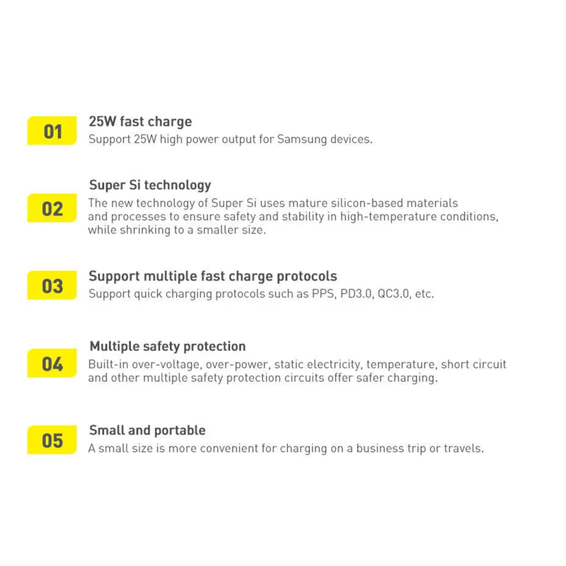 تکنولوژی Super Si در واقع یک متریال جدید بر پایه سیلیکون است که دارای تراکم و رسانایی حرارتی بهتری است و در چیپ این شارژر به کار رفته است. شارژرهای تولید شده با این تکنولوژی ابعاد به نسبت کوچکتری دارند، سریعتر هستند و در شرایط دمایی بالا مقاومت بیشتری خواهند داشت. همین امر سبب شده تا یک آداپتور 25 وات ساخته شده از فناوری Super Si اندازهای برابر با یک آداپتور شارژ 5W داشته باشد.