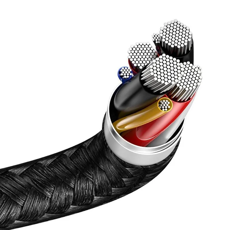 درون کابل دارای 8 مجموعه از رشته سیم های مسی است که هر کدام از آن ها داخل خود دارای رشته سیم های نازک تر و بیشتری هستند، این مجموعه به انتقال بهتر و با ثبات تر دیتا و همچنین شدت جریان کمک می کنند که می توانید به خوبی اعمال آن ها را انجام دهید. یک لایه محافظتی TPE نیز روی این رشته سیم ها قرار داده شده است که محافظت بهتری را برای شما ایجاد خواهد کرد.