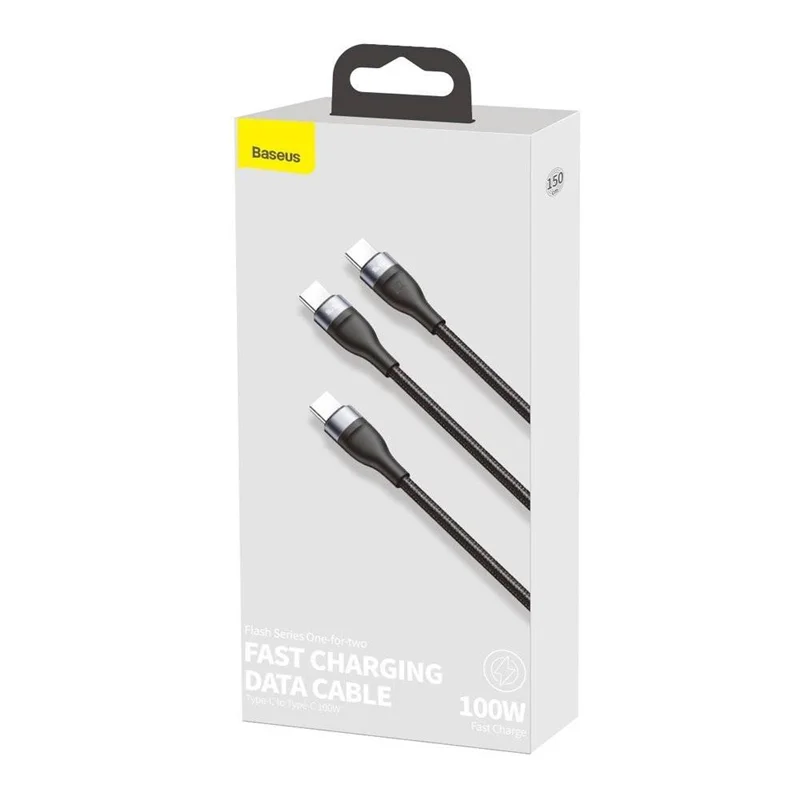 کابل فست شارژ دو سر تایپ سی به تایپ سی Baseus Flash Series One-for-two Fast Charging Data Cable Type-C to C+C 100W 1.5m CA1T2-C06