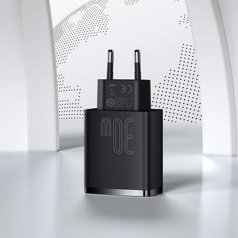 شارژر دیواری Baseus CCXJ-E01 Compact Wall Charger 30W Type C And USB Quick Charger