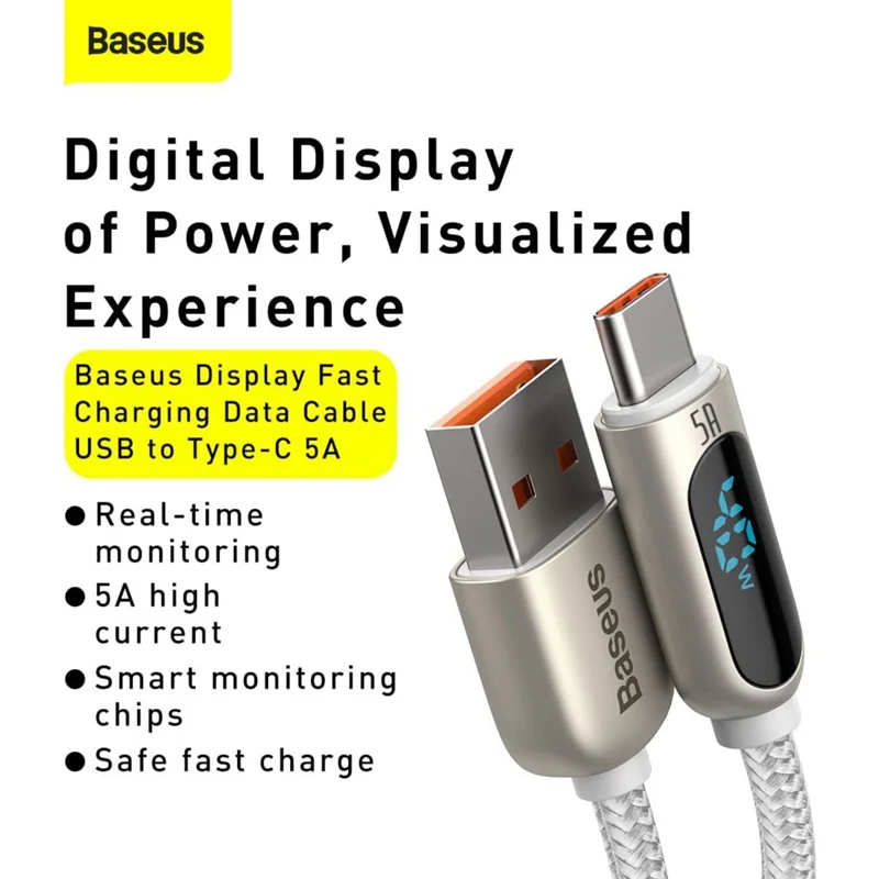 کابل شارژ و دیتا تایپ سیBaseus Display Fast Charging Data Cable USB to Type-C 5A 2M CATSK-A02