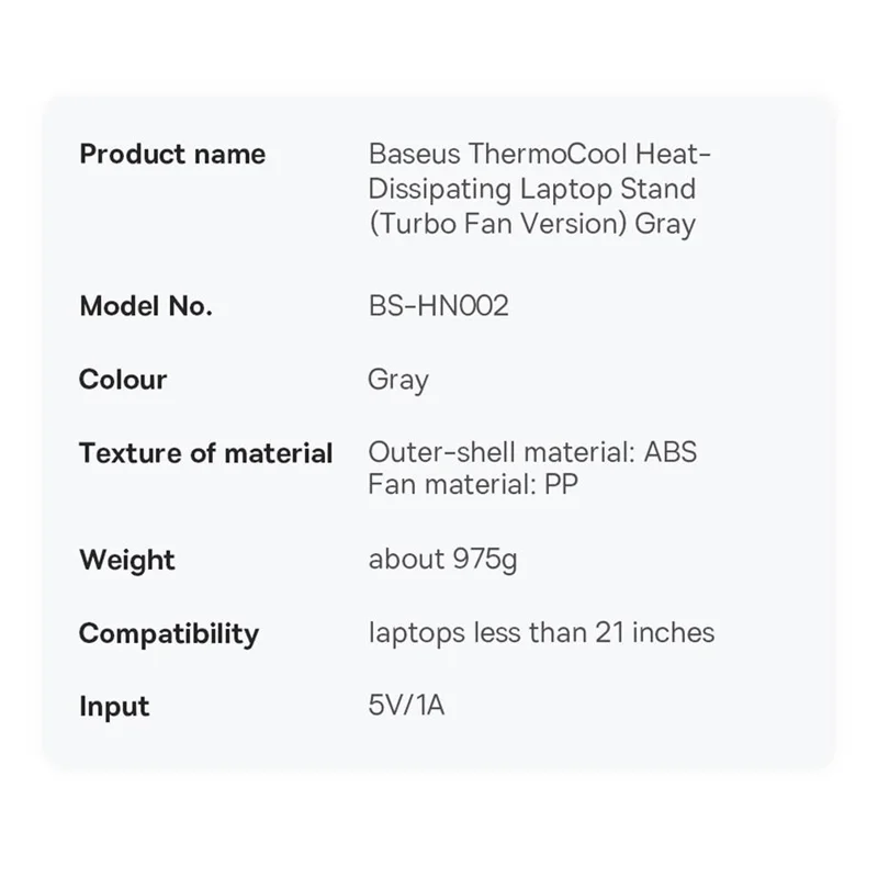 پایه لپ تاپ بیسوس برای صفحه نمایش های با 21 اینچ طراحی شده است. علاوه برگرم شدن دستگاه به شما اجازه می دهد بدون اتلاف وقت کار خود را انجام دهید. این کول پد دارای پایه های با 9 حالت نور پردازی RGB و با طراحی تو خالی و فن های دو گانه توربوی پرسرعت داخلی ، همچنین گرما با سرعت بیشتر از لپ تاپ شما رفع خواهد شد. این پایه دارای 2 درگاه USB است که به شما این امکان را می دهد از لپ تاپ خود برای تغذیه پایه و اتصال دستگاه های دیگر استفاده کنید. این استند لپ تاپ داری یک پایه ضد لغزش جهت لیز خوردن لپ تاپ از پایه جلوگیری می نمائید.داری ابعاد 401 میلی متر ، 350 میلی متر و 31 میلی متر با وزن 975 گرم با وردی 5 ولت و 1 آمپر است.