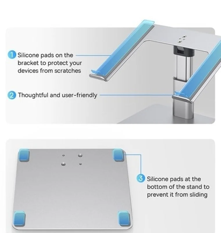 این پایهی نگهدارنده مناسب لپتاپها، تبلتها و صفحات نقاشی دیجیتال 11 تا 17.3 اینچیست، 1.4 کیلوگرم وزن دارد و متشکل از 3 قطعهی بزرگ است که سر هم کردن آنها بهراحتی صورت میگیرد. بهعلاوه آنچه پایداری این استند را تضمین میکند، استفاده از آلیاژ آلومینیوم در ساخت این قطعات است.