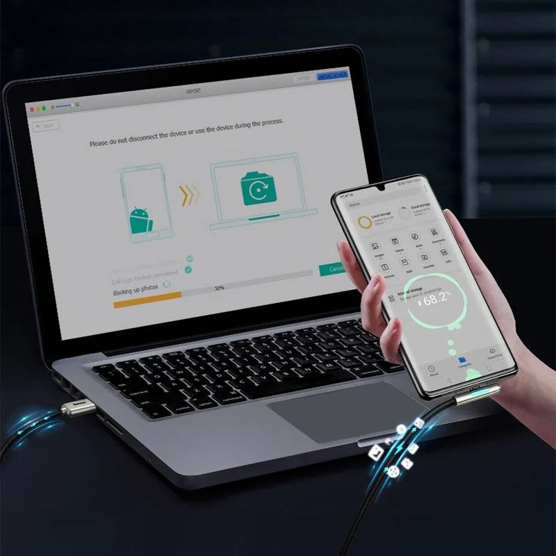 کیفیت بالای کابل شارژ 1 متری تایپ سی مخصوص گیمینگ بیسوس Baseus Iridescent Lamp HW Charge Mobile Game، علاوه بر جنس بدنه، در سرعت انتقال داده نیز قابل مشاهده است. با استفاده از این کابل میتوان با سرعت بالای 480 Mbps داده های خود را بین کامپیوتر و گوشی همراه منتقل کرد.