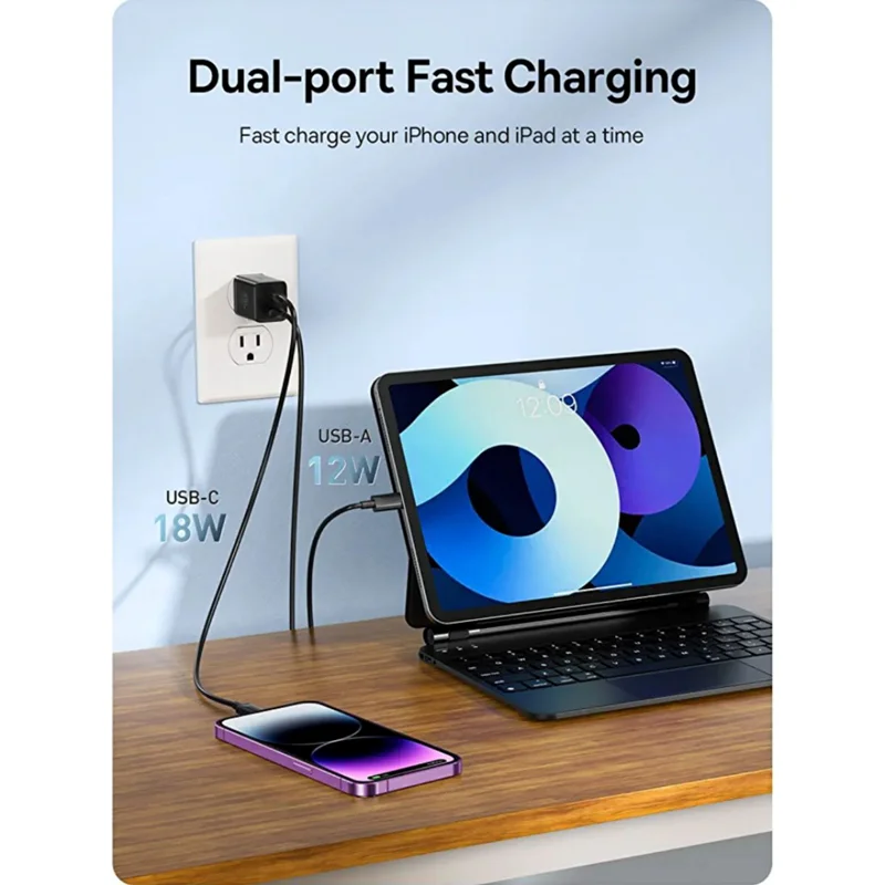 توجه داشته باشید که اگر از هر دو خروجی به صورت همزمان استفاده کنید، توان آنها تقسیم شده و کاسته میشود و در آن حالت، خروجی تایپ سی حداکثر 18 وات داشته و خروجی یو اس بی حداکثر 12 وات دارد. در این حالت نیز ولتاژ و شدت جریان خروجی توان 18 واتی، یکی از این حالات را دارد: 9V~2A / 12V~1.5A و ولتاژ و شدت جریان خروجی در حالتی که توان 18 وات است، برابر با: 5V~2.4A / 9V~1.33A / 12V~1A است.