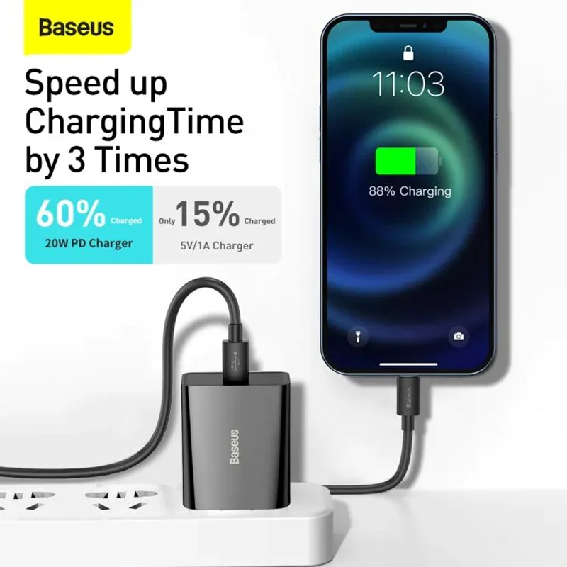 شارژر دیواری فست شارژ بیسوس از پروتکل های شارژ سریع PD3.0، QC3.0، QC2.0 و FCP پشتیبانی می کند و با فناوریهای شارژ سریع PD 20W و PD 18W سازگار است.