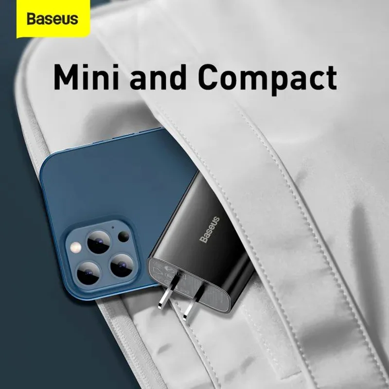 بدنه شارژر فست بیسوس از پلاستیک ABS ساخته شده و به راحتی حرارت داخلی را از سطح خارج میکند تا شارژر سریع داغ نشود. ابعاد آن 26×43×50 میلی متر میباشد و وزنی برابر با 53 گرم دارد که به نسبت یک شارژر 20 واتی بسیار سبک است.