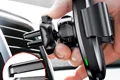 هولدر ها یکی از ابزاری می باشند که داخل اتومبیل حضور آن ها بسیار حس می شود زیرا شما می توانید استفاده از دست از گوشی خود استفاده کنید.Wireless Charger Gravity Car Holder محصولی از کمپانی Baseus بوده که به صورت دو کاره طراحی شده است و با خرید آن هم یک هولدر و هم یک شارژروایرلس در اختیار خواهید داشت.این محصول از طریق گیره قرار گرفته در پشت آن به دریچه کولر متصل می شود.