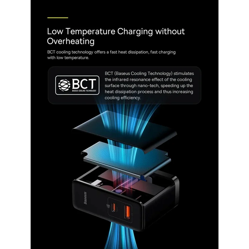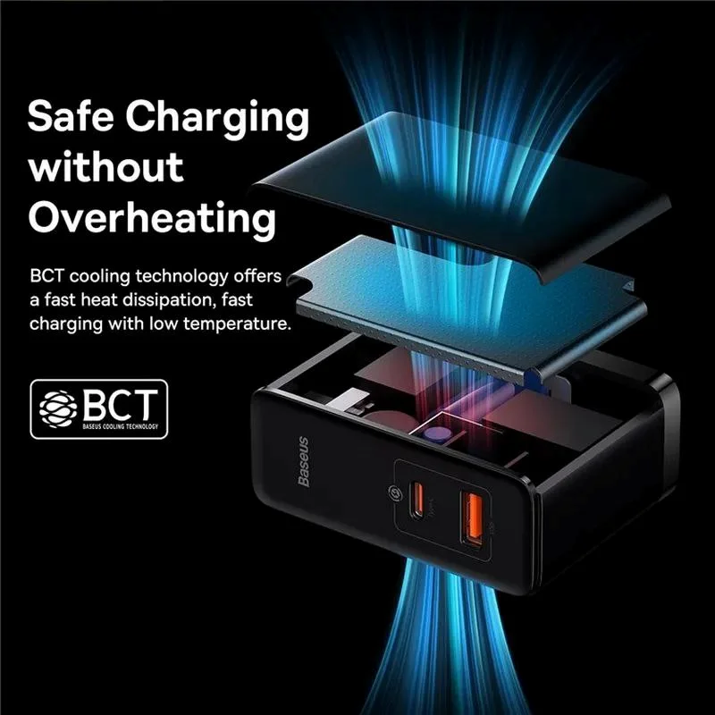 برای جلوگیری از داغ شدن بدنه یک سیستم دفع حرارتی در داخل برد کار گذاشته شده که از آسیب دیدن کیس شارژر جلوگیری میکند. بیسوس این تکنولوژی را به نام BCT یا Baseus Cooling Technology (سیستم خنک کننده بیسوس) یاد می کند.