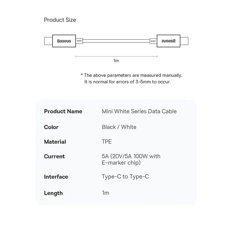 در داخل بسته بندی شارژر مک بوک بیسوس یک کابل تایپ سی به تایپ سی نیز وجود دارد.