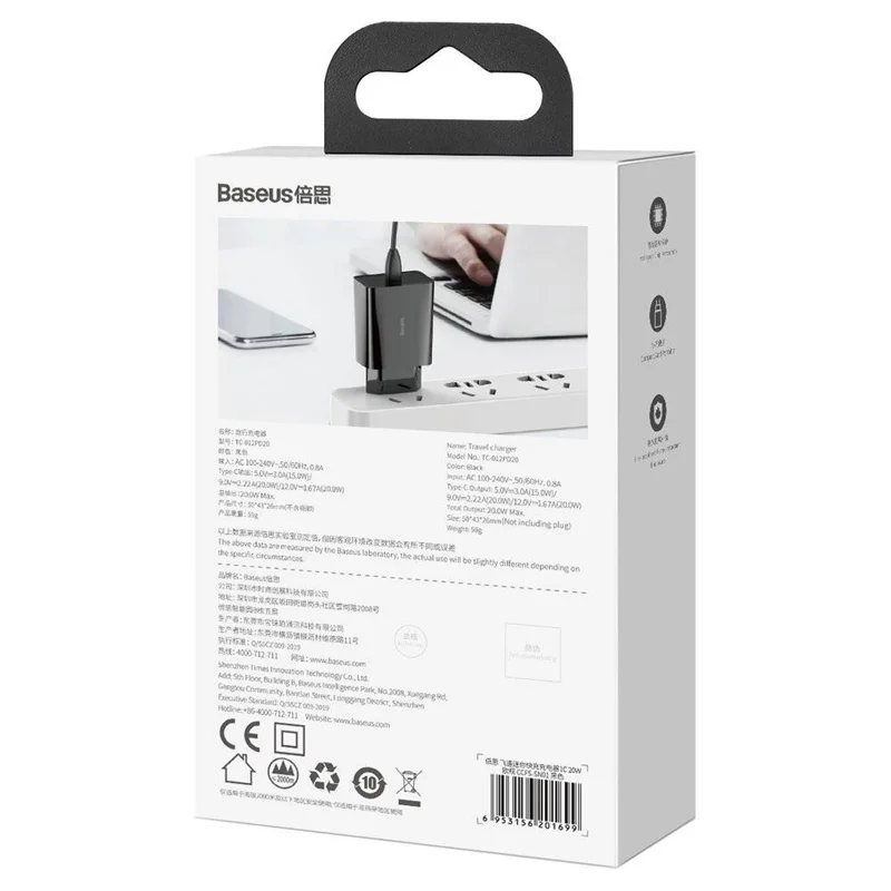 شارژر دیواری سریع مینی بیسوس Baseus Speed Mini Quick Charger USB-C 20W PD CCFS-SN01 با داشتن تمام ویژگیهای بالا به دلیل داشتن ابعادی بسیار کوچک برای حمل بسیار مناسب است.