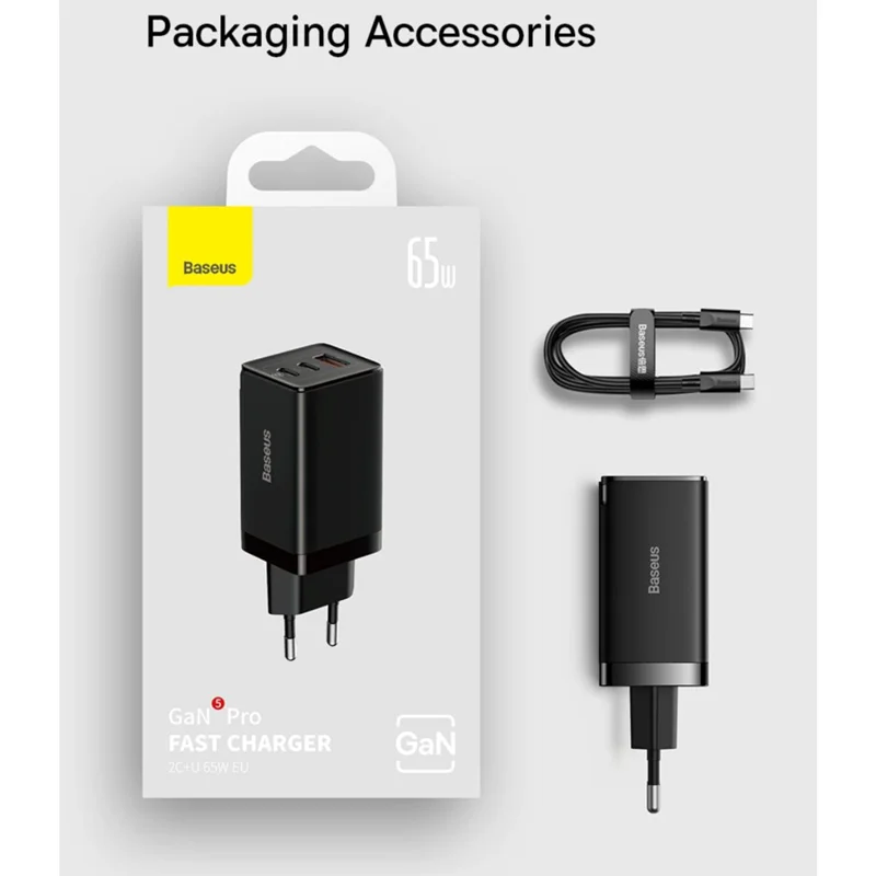 شارژر دیواری 65 وات بیسوس مدل GaN5 Pro Fast Charger 65W به همراه کابل USB-C