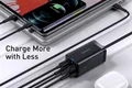 دیگر لازم نیست بی وقفه منتظر شارژ شدن دستگاه خود باشید. شارژر بیسوس به 4 پورت (USB-C x2، USB x2) مجهز است، بنابراین به شما امکان می دهد چندین دستگاه را به طور همزمان شارژ کنید. از پروتکل های شارژ سریع پشتیبانی می کند، بنابراین انواع مختلف دستگاه ها را در کمترین زمان شارژ خواهید کرد. این شارژر با لپ تاپ، گوشی های هوشمند، تبلت ها و کنسول های بازی کار می کند. علاوه بر این، طراحی سبک و جمع و جور آن فضای زیادی را اشغال نخواهد کرد.