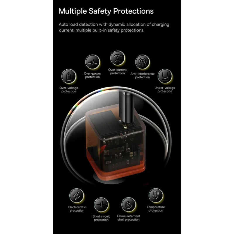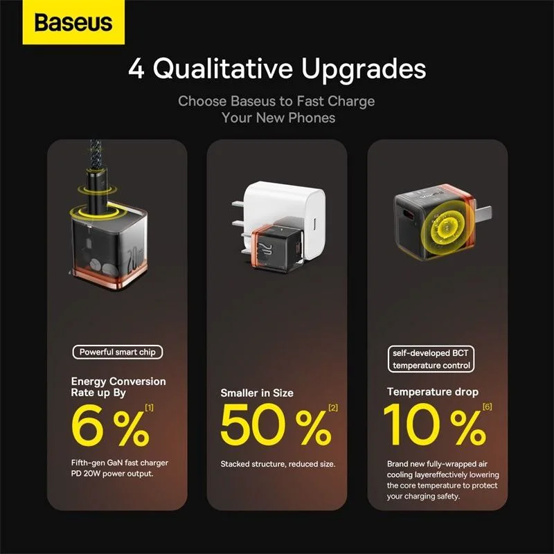 اکنون می توانید دستگاه های خود را در کمترین زمان شارژ کنید. شارژر Baseus GaN3 امکان شارژ سریع را برای شما فراهم می کند.این شارژر از خروجی توان PD 20 واتی از نسل پنجم GaN Technology پشتیبانی میکند و 50 درصد کوچکتر از شارژر 20 واتی اپل است. فناوری بهبود یافته GaN5 سرعت شارژ دستگاه های شما را تا 16.67 درصد افزایش می دهد و همچنین اتلاف انرژی را تا 25% کاهش میدهد.نگران ایمنی شارژر یا دستگاه های متصل به آن نباشید. این محصول به محافظت موثر در برابر اتصال کوتاه، اضافه ولتاژ و جریان اضافه مجهز شده است. همچنین از فناوری پیشرفته BCT (تکنولوژی خنک کننده Baseus) استفاده می کند که اتلاف گرمای موثر را تضمین می کند و از دستگاه در برابر گرمای بیش از حد محافظت می کند.شارژر Baseus بسیار سبک است,وزن آن تنها حدود 31 گرم است. همچنین با اندازه جمع و جور متمایز می شود. می توانید به راحتی آن را در کوله پشتی یا کیف خود قرار دهید یا حتی آن را در جیب خود قرار دهید. فضای زیادی را اشغال نخواهد کرد.این شارژر با آیفون 12 و 13، آیپد پرو، و گوشی های هوشمند شیائومی، سامسونگ و هواوی و غیره سازگار است.