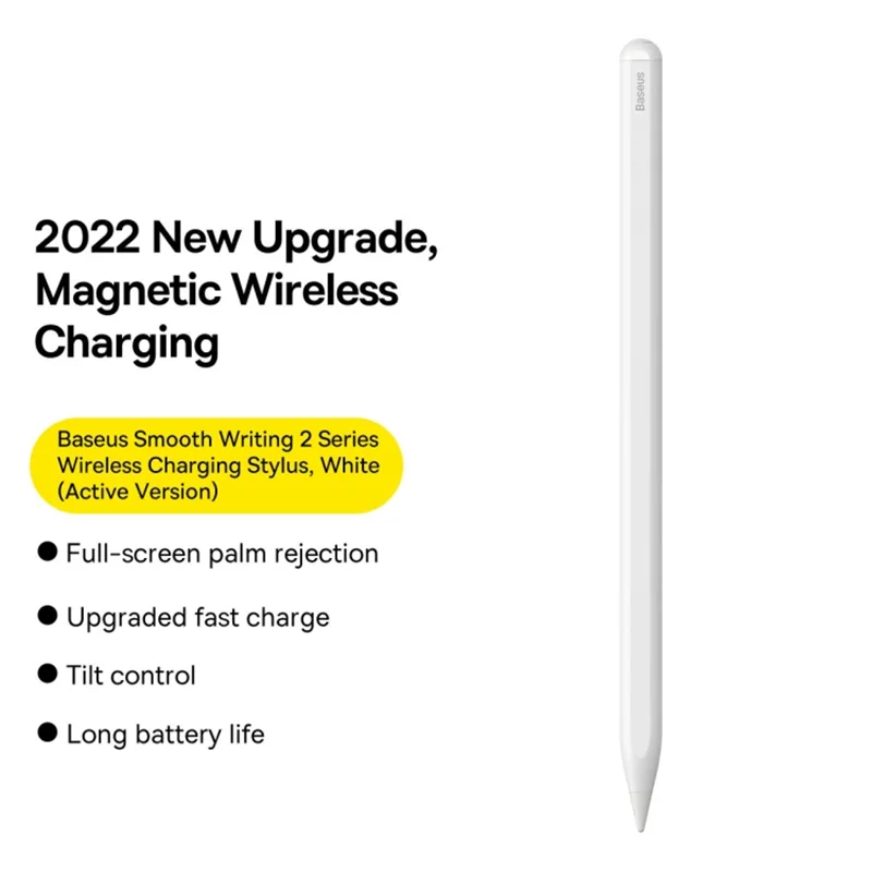 قلم استایلوس Baseus Smooth Writing 2 Series Wireless Charging Stylus, White (Active Version with active pen tip)