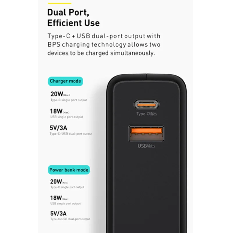 بیسوس در این محصول دست به نوآوری زده و شارژری تولید کرده که قابلیت استفاده به عنوان پاوربانک را هم دارد. بنابراین هر وقت پریز اطرافتان بود میتوانید با آداپتور گوشی را شارژ کنید و هر وقت نبود پاوربانک به کمکتان میآید. پاوربانک و شارژر دیواری بیسوس Baseus PPNL010001 Power Station 2 مشکل شما را برای شارژ گوشی در ماشین و هنگام سفر حل کرده و از طرفی نیاز به خریدن آداپتور جدا را نیز بر طرف کرده است.