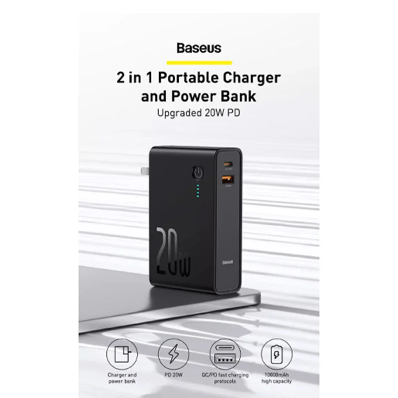 شارژر دیواری و شارژر همراه Baseus Power Station 2 Power Bank Adaptor PPNL010001 10000mAh 20W CN