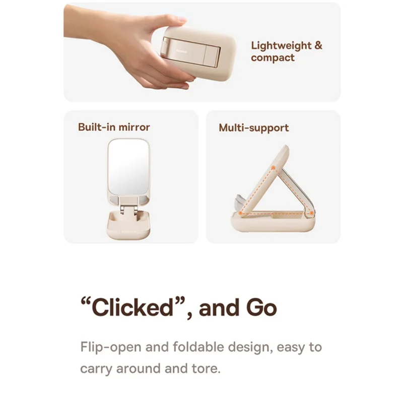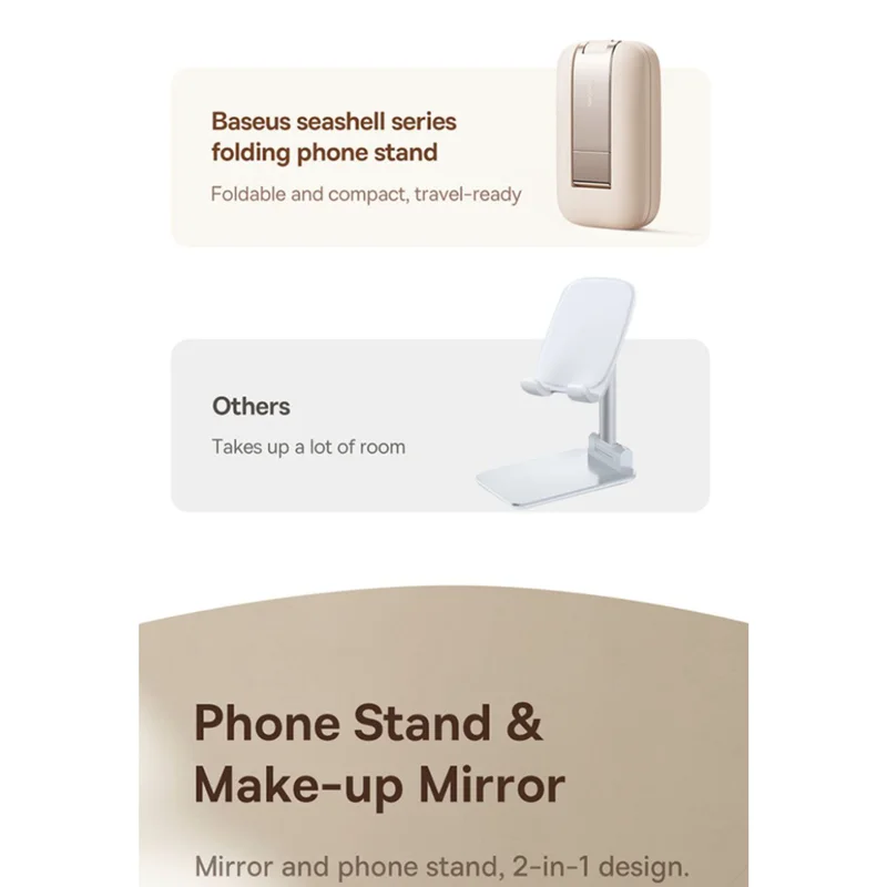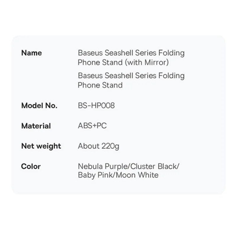 پایه نگهدارنده گوشی موبایل بیسوس Seashell Series Folding Phone Stand به شما این امکان را می دهد ارتفاع را تنظیم کنید و مانعی برای درگاه شارژ ندارد و طراحی متفکرانه آن ثبات را تضمین می کند. علاوه بر این، سبک وزن و تاشو است - می توانید به راحتی آن را در کیف یا کوله پشتی خود قرار دهید. علاوه بر این، دارای یک آینه داخلی برای راحتی بیشتر در استفاده است.