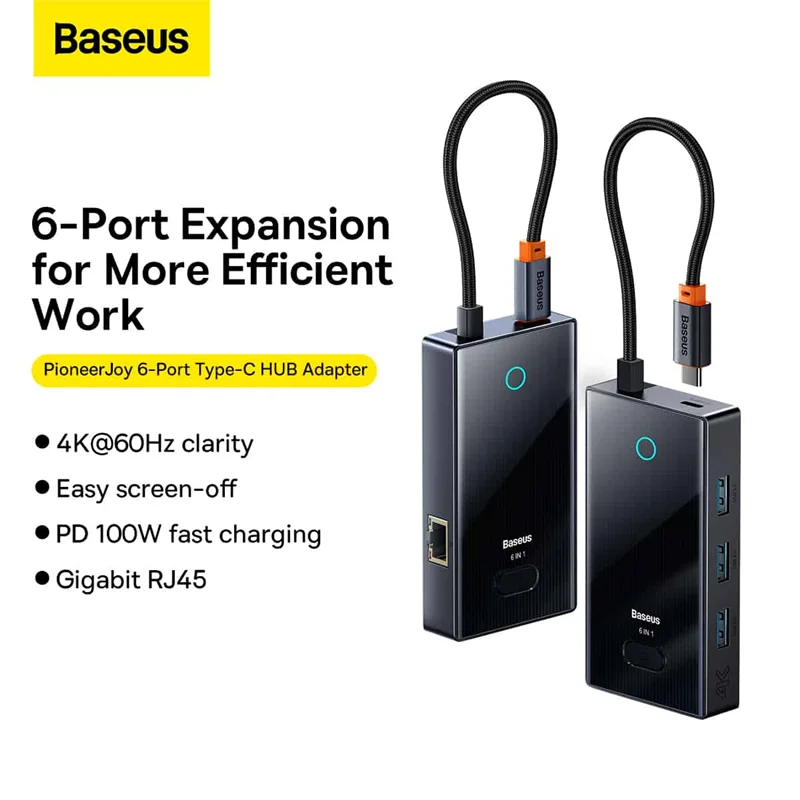 هاب 6 پورت Baseus WKYY030213 PioneerJoy دارای 6 پورت مختلف می باشد که در ادامه به قابلیتهای پورت ها اشاره خواهیم کرد.