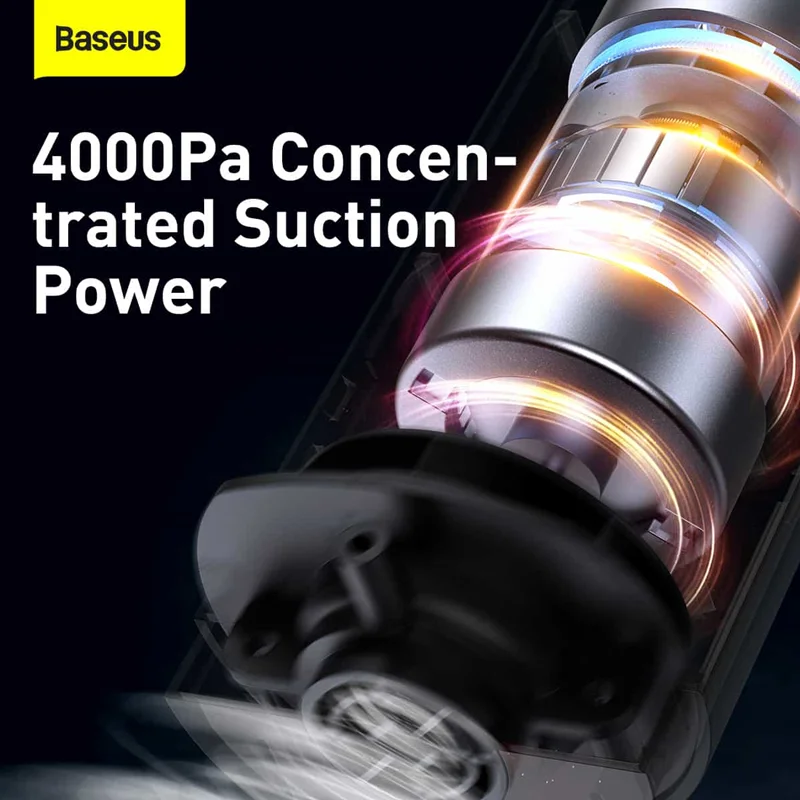 توان جارو شارژی بیسوس Baseus CRXCQA1-01 برابر با 30W بوده که قدرت مکشی برابر با 4000 پاسکال به آن بخشیده است. با وجود قدرت مکش بالا آن، نویز دستگاه بسیار پایین و کمتر از 65db است.