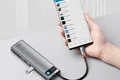 لپ تاپ شما پورت های کافی ندارد؟ آیا می خواهید قابلیت های آن را افزایش دهید؟ ساده تر از چیزی است که به نظر می رسد! هاب چند منظوره 11in1 Baseus مجهز به 3 پورت USB 3.0، 1 USB-C، 2 HDMI، 1 VGA، 1 اترنت و 1 عدد صوتی 3.5 میلی متری است. همچنین دارای اسلات برای کارت های SD و TF است. از انتقال فایل با سرعت بالا تا 5 گیگابیت بر ثانیه پشتیبانی می کند و می تواند تا کیفیت ویدیوی 4K را نمایش دهد. همچنین از شارژ سریع PD 100 واتی در درگاه USB-C پشتیبانی می کند. همچنین به دلیل اتلاف گرمای فوق العاده کارآمد و سازگاری گسترده خود متمایز است. متوجه خواهید شد که ارزش استفاده از یک پورت کامپیوتر برای به دست آوردن 11 عدد از آنها را دارد!