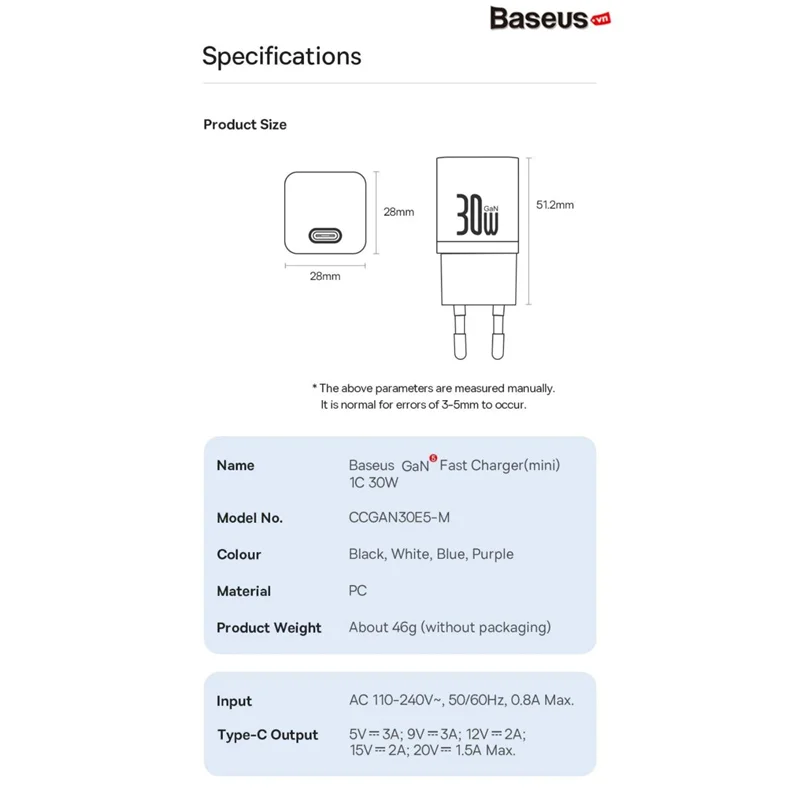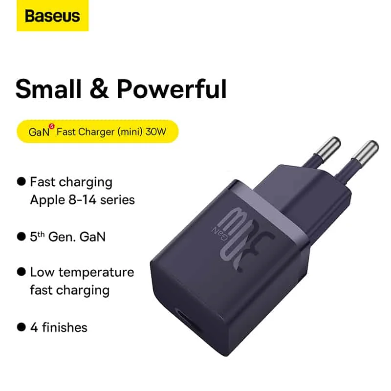 شارژر اصلی Baseus مینی مجهز به فناوری GaN است که استفاده از آن را راحت می کند. اگرچه اندازه جمع و جور آن ممکن است شما را شگفت زده کند، فریب نخورید. این شارژر با وجود اندازه کوچکش، قدرت واقعی را پنهان می کند. با 30 وات قادر است گوشی شما را تنها در 30 دقیقه تا 57 درصد شارژ کند. این راه حل عالی برای کسانی است که از کارایی و عملی بودن قدردانی می کنند. این شارژر گواه این است که قدرت فوق العاده می تواند در یک بسته کوچک جا شود.