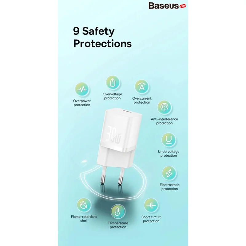 شارژر اصلی Baseus نه تنها قدرت فوق العاده ای را ارائه می دهد، بلکه ایمنی بی نظیری را برای دستگاه شما فراهم می کند. حفاظت از انرژی بیش از حد یا ولتاژ بیش از حد پایداری برق را تضمین می کند، در حالی که حفاظت ضد تداخل شارژ تمیز و بدون وقفه را تضمین می کند. علاوه بر این، مجهز به تعدادی ویژگی ایمنی است که از دستگاه و شارژر شما در برابر آسیب محافظت می کند. بدون شک شارژر بیسئوس همه چیزهایی که برای شارژ ایمن و کارآمد نیاز دارید را دارد.