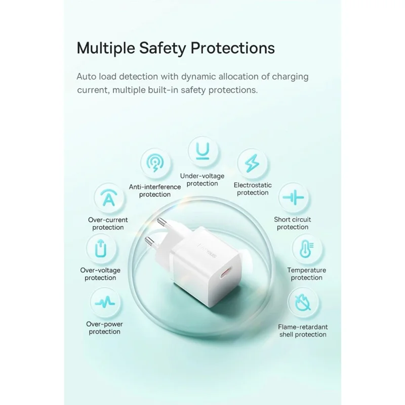 شارژر اصلی Baseus نه تنها قدرت فوق العاده ای را ارائه می دهد، بلکه ایمنی بی نظیری را برای دستگاه شما فراهم می کند. حفاظت از انرژی بیش از حد یا ولتاژ بیش از حد پایداری برق را تضمین می کند، در حالی که حفاظت ضد تداخل شارژ تمیز و بدون وقفه را تضمین می کند. علاوه بر این، مجهز به تعدادی ویژگی ایمنی است که از دستگاه و شارژر شما در برابر آسیب محافظت می کند. بدون شک شارژر بیسئوس همه چیزهایی که برای شارژ ایمن و کارآمد نیاز دارید را دارد.