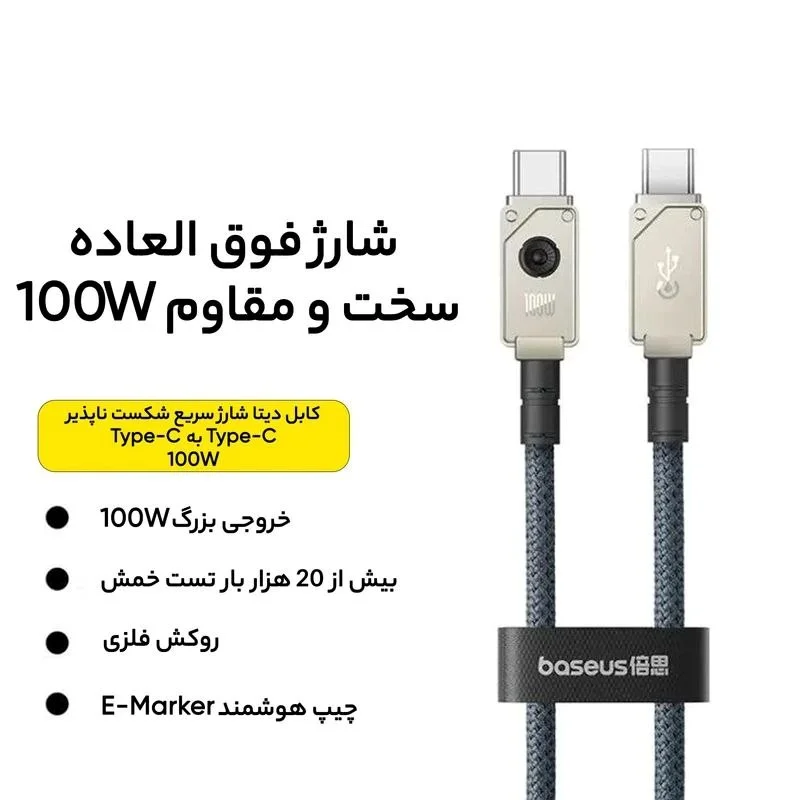 کابل 2 سر تایپ سی ساخته شده از مواد مورد استفاده در صنایع نظامی Baseus