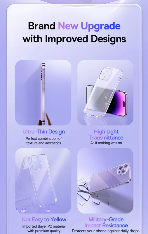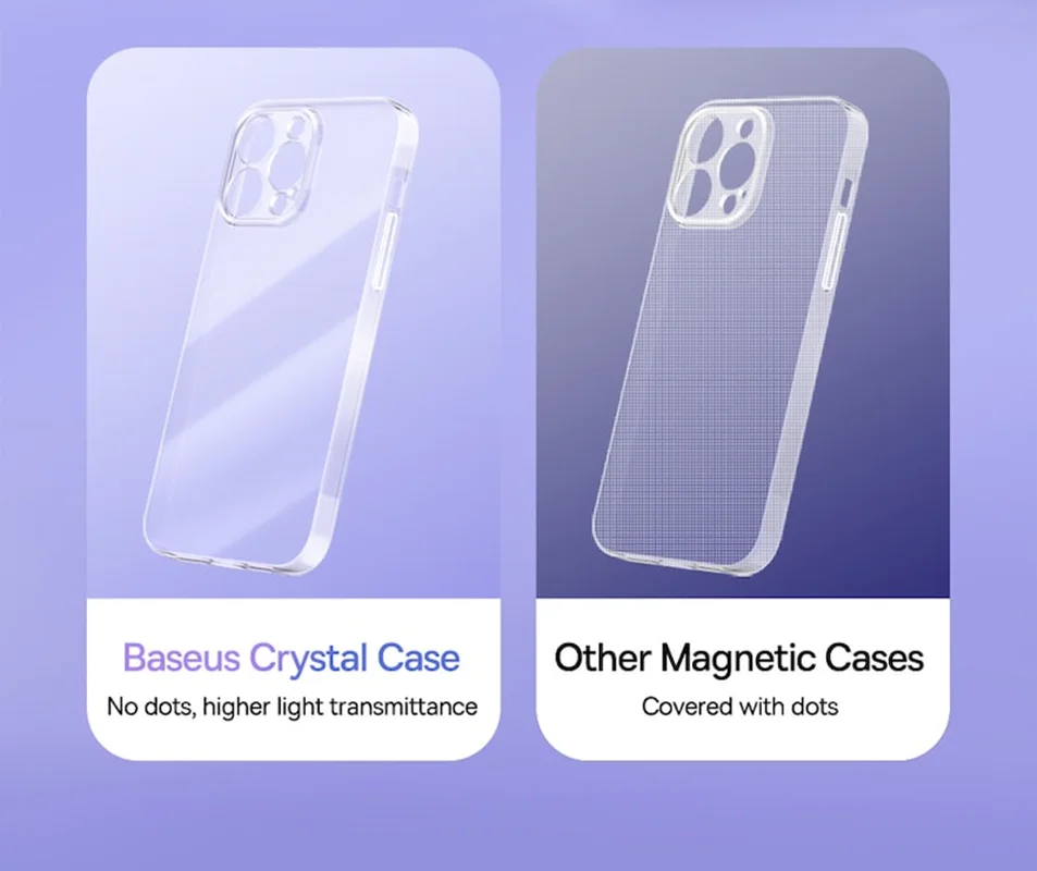 با Baseus روی عملکرد و سبک شرط بندی کنید. قاب Crystal Clear کاملاً متناسب با آیفون 14 پرو مکس است و انتقال نور بالایی را فراهم می کند. در لمس نیز دلپذیر است. علاوه بر این، می توانید بدون هیچ مشکلی برق تلفن هوشمند خود را به صورت بی سیم تجدید کنید. فراموش کنید که باید کیس را بردارید!