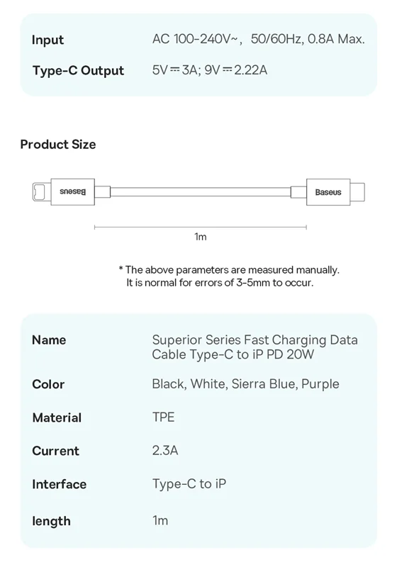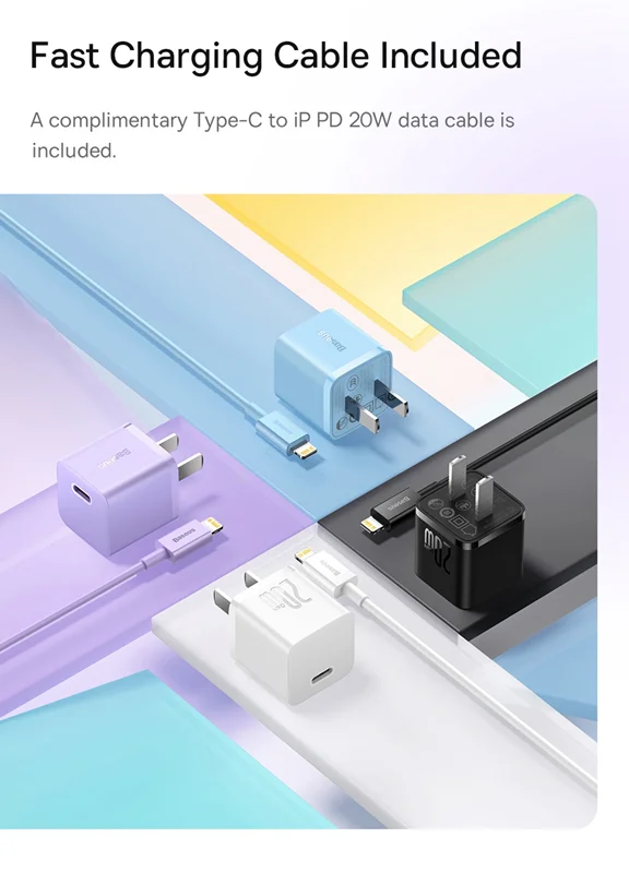 آداپتور شارژر سریع BASEUS GaN5 1C 20W CN شارژر دیواری مجموعه دوشاخه (مینی) با کابل داده شارژ سریع سری Superior Type-C به iP PD 20W 1m - اندازه سوپر مینی فضای کمی را در پریز اشغال می کند و حمل آن آسان است,شارژ سریع 20 واتی PD – از شارژ سریع پشتیبانی می کند و با سری 13/12 اپل سازگار است، ایمن و پایدارفناوری پیشرفته GaN - فناوری GaN نرخ تبدیل انرژی بالاتری را با پاسخ سریعتر در اندازه کوچکتر ارائه می دهد,فناوری خنککننده Baseus – از فناوری نانو برای تحریک تشدید مادون قرمز سطح تابشی برای تسریع فرآیند اتلاف گرما، شارژ سریع ایمن در تمام طول مسیر استفاده میکند.حفاظت های ایمنی چندگانه – حفاظت های داخلی در برابر ولتاژ، جریان بیش از حد، توان بیش از حد، کم ولتاژ، الکترواستاتیک، دمای بیش از حد، اتصال کوتاه و ضد تداخل، ایمنی شارژ شما را تضمین می کند.