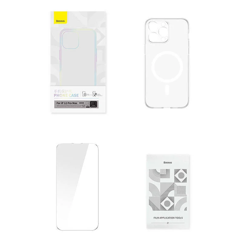 قاب محافظ Baseus Magnetic Crystal Clear برای iPhone 12 Pro Max (شفاف) + شیشه سکوریت + کیت تمیز کننده