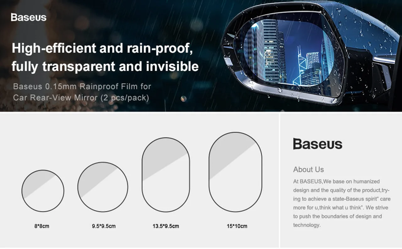 رانندگی در فصل پاییز و زمستان دارای دشواری های خاص خود است... برای مثال با بارش باران و برف دید راننده بسیار کم می شود و آینه ها به دلیل قطرات باران و بخار کارایی قبل خود را از دست می دهند و در دید راننده مشکل ایجاد می کنند. کمپانی بیسوس برای رهایی از این مشکلات برچسبی به نام Rainform Film SGFY-C02 تولید کرده که قابلیت آبگریز داشته و تمامی خطرات ایجاد شده از این بابت را به کلی از بین برده است.شما برای دید بهتر فقط کافی است این برچسب را بر روی آینه خود متصل کنید تا دیگر اثر بخار و یا قطرات آب هیچ تاثیری در آن قسمت نداشته باشند و اصلا دید راننده را محدود نکنند. داخل پک این محصول دو عدد بر چسب قرار دارد که مناسب ترین مکان برای نصب آن ها بر روی آینه بغل های اتومبیل است. این محصول به صورت بیضی طراحی شده و ابعادی معادل 95×135 میلی متر دارد. با استفاده از بر چسب Baseus Rainproof Film در فصل زمستان بدون هیچگونه مشکلی از آینه های اتومبیل خود استفاده کرده و رانندگی کنید.