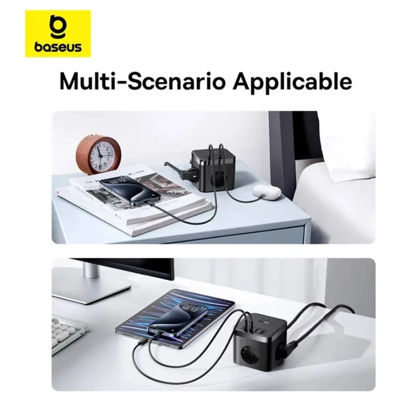 شارژر اصلی Baseus PowerCombo چندین پورت و پریز برق AC را ارائه می دهد، بنابراین می توانید چندین دستگاه را به طور همزمان به آن متصل کنید. علاوه بر این، استفاده ایمن را تضمین می کند و به دلیل طراحی دقیق آن متمایز است. علاوه بر این، سازگاری گسترده، راحتی استفاده را افزایش می دهد.