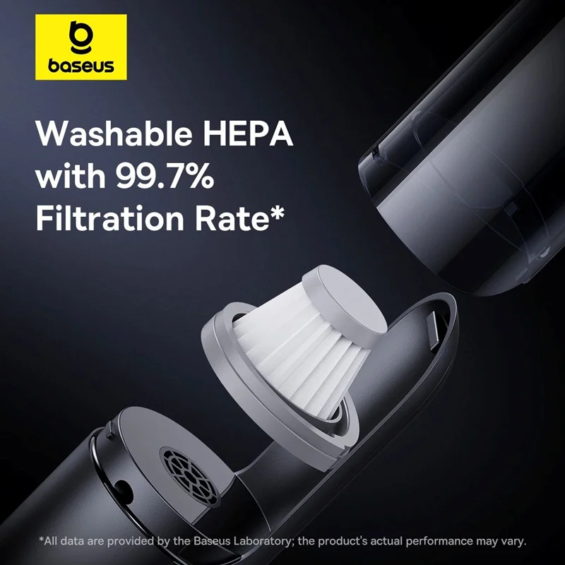 جارو برقی ماشین Baseus A0 Pro برای فیلتر کردن کامل تمام گرد و خاکها از دو لایه فیلتر استفاده میکند. یک لایه فیلتر اولیه برای جلوگیری از عبور زبالههایی که ابعاد بزرگتری دارند و لایه دوم، فیلتر HEPA است که در داخل قاب فیلتر قرار میگیرند. شاید بخواهید بدانید که فیلتر هپا از الیاف فایبرگلاس ساخته شده و میتواند آلودگیها را تا قطر 0.3 میکرون فیلتر نماید. طراحی فیلتر به گونهای است که میتوانید به سادگی آن را شستشو داده و تمیز کنید.