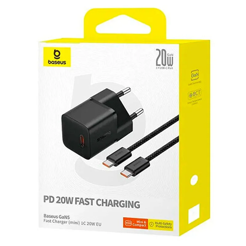 شارژر دیواری Baseus GaN5 20W EU به همراه کابل تایپ سی ۱۰۰ وات