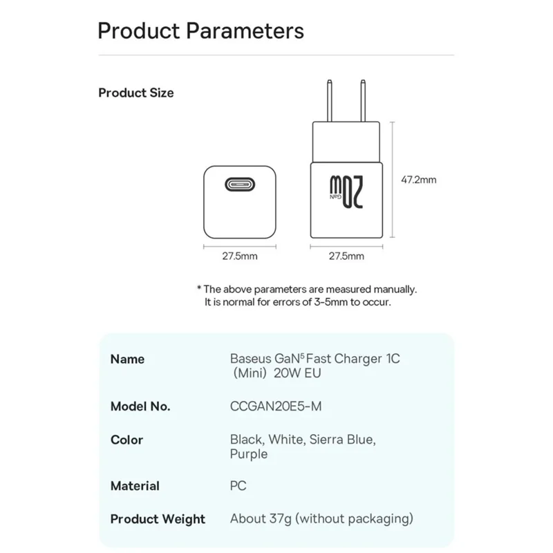 آیا به دنبال شارژری مطمئن هستید که به سرعت وسایل شما را شارژ کند، اما فضای زیادی را در کیف یا چمدان شما اشغال نکند؟ شارژر مینی Baseus برای شما عالی خواهد بود! به لطف فناوری ویژه، 50٪ کوچکتر از یک شارژر معمولی است، اما قدرت عظیم 76٪ افزایش یافته است! همچنین لازم نیست نگران ایمنی تجهیزات خود باشید. دستگاه بیسئوس به تعدادی ویژگی ایمنی مجهز است، بنابراین شما تضمین شارژ ایمن را دریافت می کنید.