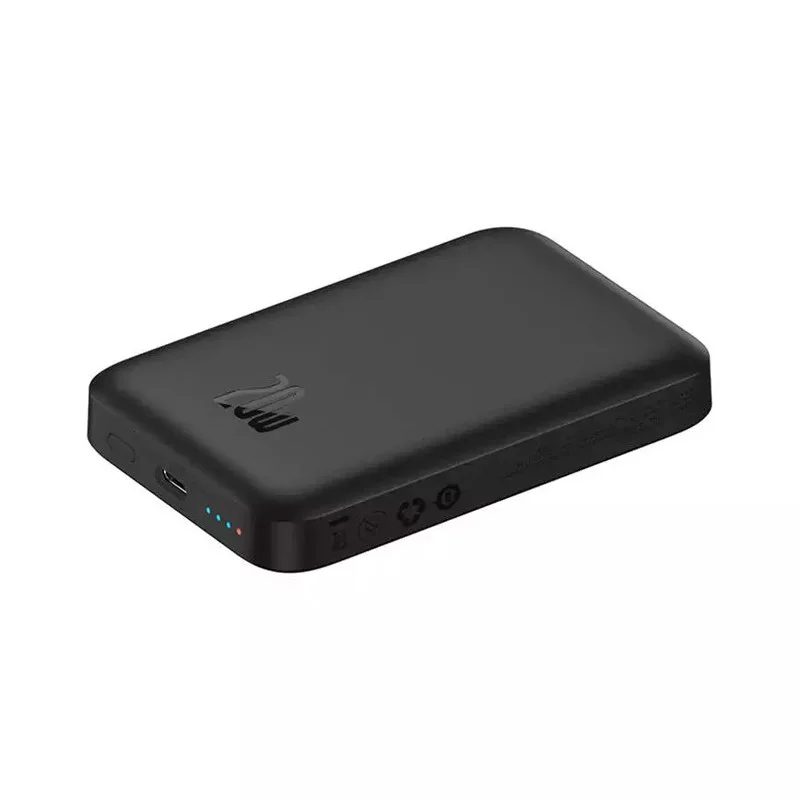 پاور بانک بیسیم مینی بیسیم یک پاوربانک راحت و کارآمد است که برای استفاده بیسیم طراحی شده است و میتواند به سرعت دستگاههای دارای شارژ را به صورت بیسیم با توان حداکثر 20 وات شارژ کند.این دستگاه به یک آهنربای قدرتمند در پشت مجهز شده است که اتصال آن را به تلفن شما آسان می کند و یک اتصال محکم برای شارژ بی سیم ایجاد می کند. علاوه بر این، این محصول به یک درگاه شارژ USB-C نیز مجهز شده است که به شما امکان میدهد دستگاههایی را که از شارژ بیسیم پشتیبانی نمیکنند با استفاده از کابل C به C همراه محصول شارژ کنید.ظرفیت این پاوربانک 6000 میلی آمپر ساعت است که برای شارژ کامل یک گوشی هوشمند یا تعداد زیادی از وسایل الکترونیکی دیگر مانند هدفون بی سیم، دوربین، تبلت و غیره کافی است.این محصول همچنین با اندازه ای جمع و جور و سبک طراحی شده است که به راحتی می توان آن را هنگام مسافرت یا فعالیت های خارج از منزل با خود حمل کرد. این محصول دارای رنگ مشکی مجلل بوده و از مواد مرغوب ساخته شده است و حس اطمینان و کلاس را برای کاربر به ارمغان می آورد.