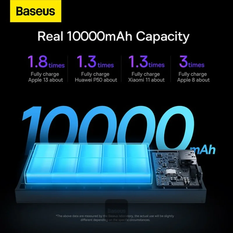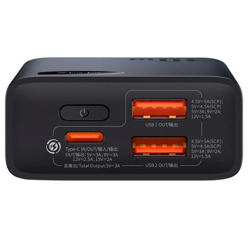 باتری پاوربانک بیسوس از نوع لیتیوم یون پلیمر بوده و دارای ظرفیت اسمی 10000 میلیآمپرساعت است؛ اما بازدهی واقعی آن 5800 میلیآمپرساعت میباشد. روی بدنه آن دو پورت خروجی یواسبی و یک پورت دوطرفه تایپسی قرار دارد. پورت تایپسی از فناوری شارژ سریع 30 وات PD برخوردار بوده و با سرعت بیشتری برای شارژدهی و شارژگیری عمل میکند. منظور از دوطرفه بودن درگاه تایپسی خروجی و ورودی بودن آن است. شدت جریان درگاههای یواسبی هم 22.5 وات است و مجهز به تکنولوژیهای شارژ سریع QC ، FCP, AFC و SCP هستند و امکان شارژ در زمان کوتاه برایتان فراهم است.