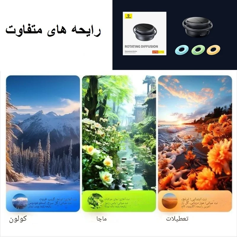 این خوشبو کننده رایحه مطبوع را به طور کاملا یکنواخت در فضای خودروی شما پخش می کند و کاملا بدون صدا می باشد. همچنین این محصول دارای سه رایحه می باشد که اطلاعات آن ها در ادامه شرح داده شده است.