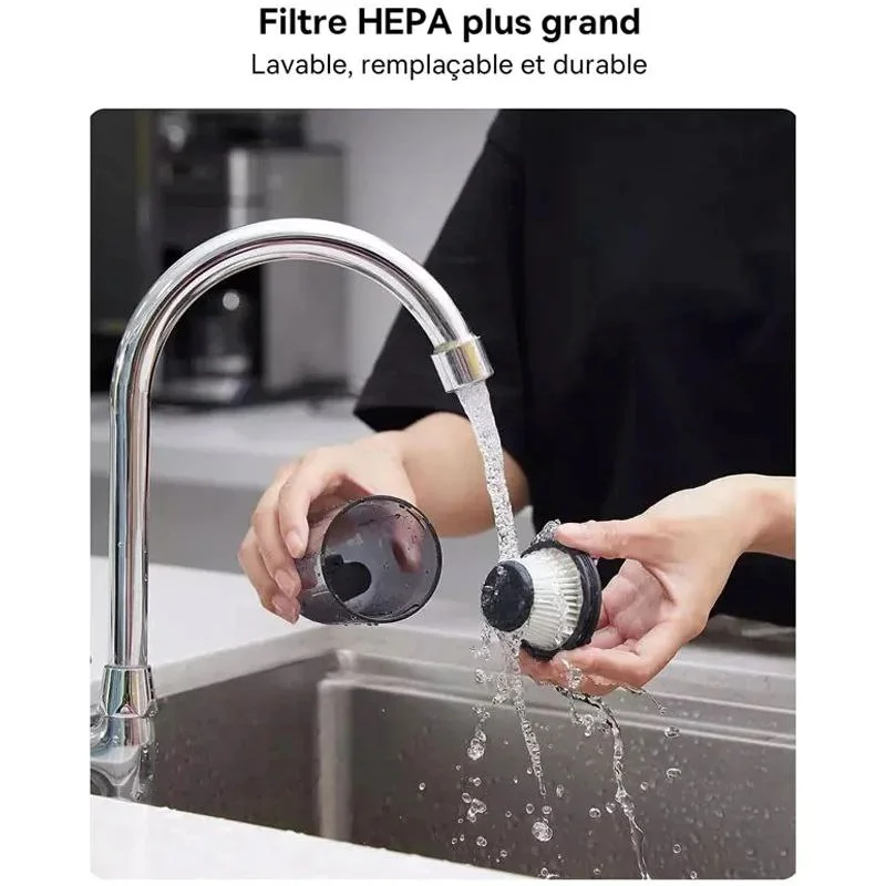 جارو شارژی ماشین Baseus A2Pro VCAQ040001 برای فیلتر کردن تمام گرد و خاکها، از فیلتر HEPA استفاده کرده که می تواند تا حدود 99.7 درصد آلاینده ها را از بین ببرد.
