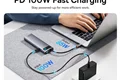 پورت Type-C PD: این درگاه از قابلیت PD بهرهمند است و حداکثر توان آن 100 وات است. شما میتوانید نوت بوکها و لپتاپهای نهایتا 100 واتی را به کمک این درگاه شارژ کنید. تنها کافیست پورت تایپ سی را توسط منبع برق تامین کرده (برای مثال توسط یک کابل تایپ سی با امکان انتقال 100 وات توان) و کانکتور تایپ سی هاب را به لپ تاپتان متصل کنید. به این صورت به پورتهای دیگری نیز دسترسی دارید و با اشغال شدن درگاه تایپ سی، همچنان میتوانید کانکتورهای دیگری را به دستگاه خود وصل کنید.