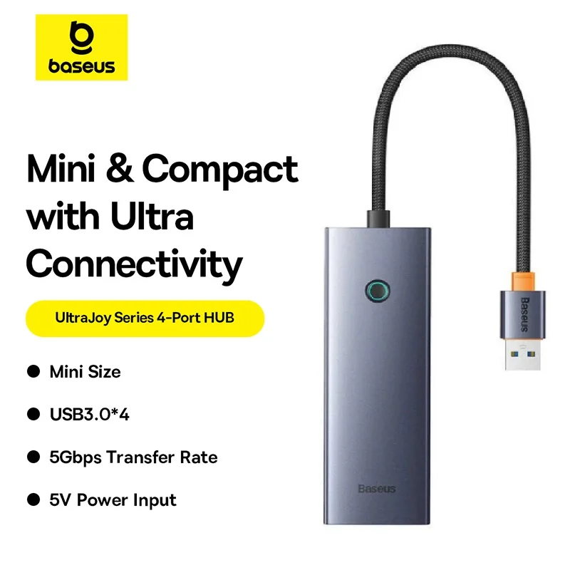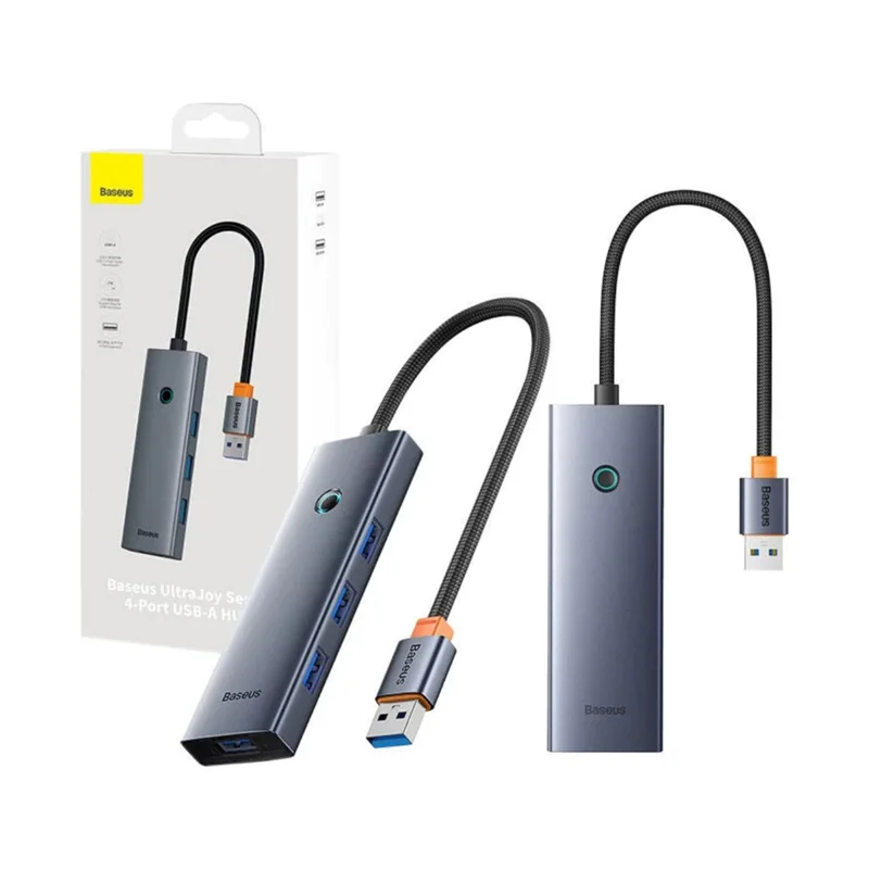 هاب بیسوس Baseus UltraJoy Series 4-Port راه حلی نوآورانه برای کسانی است که به پورت های USB بیشتری به شکل فشرده، کارآمد و ایمن نیاز دارند. این هاب آلومینیومی سبک وزن با چهار پورت USB 3.0 سرعت انتقال داده سریع تا 5 گیگابایت بر ثانیه را فراهم می کند و فناوری خنک کننده منحصر به فرد BCT و مدارهای مجتمع هوشمند آن عملکرد پایدار را حتی در زیر بارهای سنگین تضمین می کند. کابل هاب با یک کانکتور USB-C خاتمه می یابد