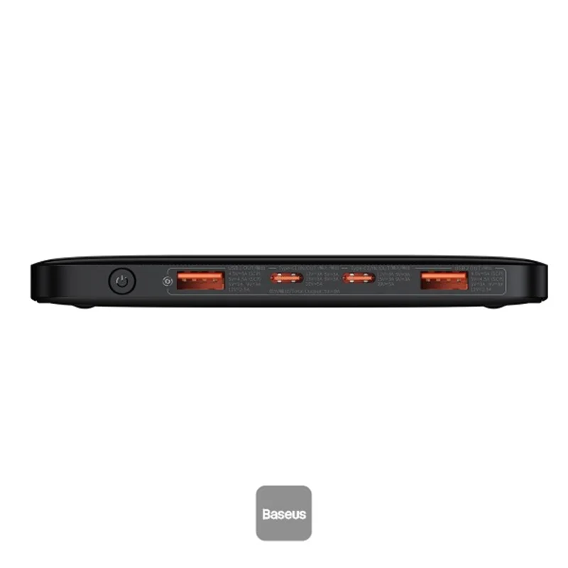 پاوربانک بیسوس Blade با دارا بودن 2 درگاه USB-A و 2 درگاه USB-C به شما امکان می دهد تا حداکثر 4 دستگاه را به طور همزمان شارژ کنید. درگاه های شارژ USB از توان شارژ 30 واتی پشتیبانی می کنند و در گاه های USB-C توان خروجی معادل 100 وات و توان ورودی 65 وات را دارا می باشند که به شما امکان می دهد برق چندین دستگاه مختلف را به طور همزمان تامین کنید. این شارژ همراه بسیار باریک از پروتکل های SCP، FCP، QC 3.0 و PD 4.0 پشتیبانی می کند. این پاوربانک برای شارژ گوشی iphone 14 Pro Max می تواند حداکثر توان 27 وات را ارائه نماید.