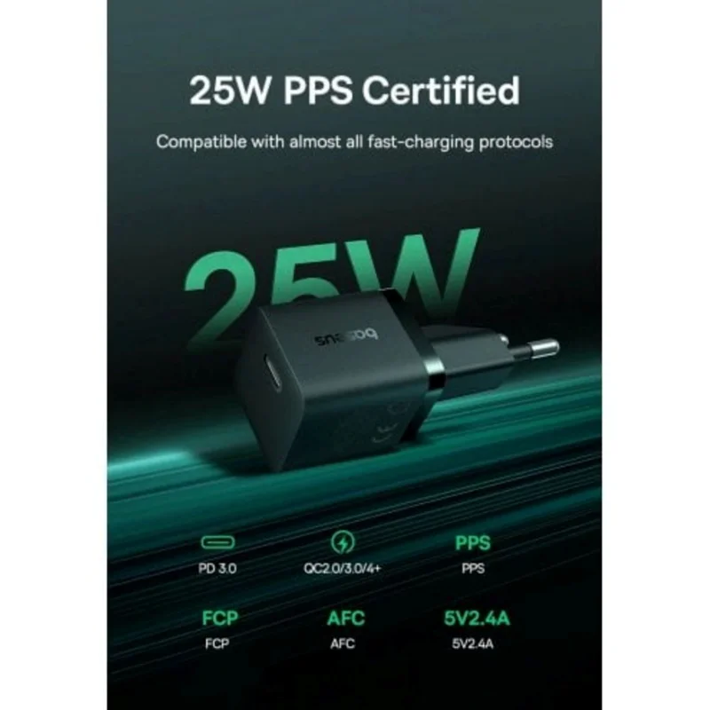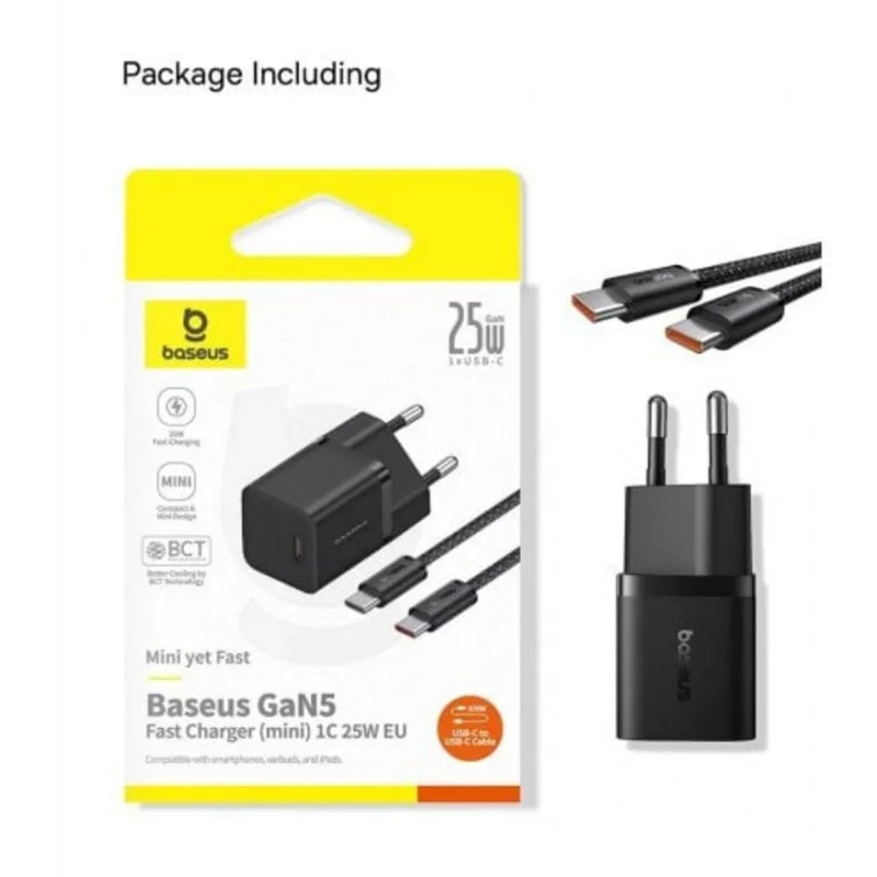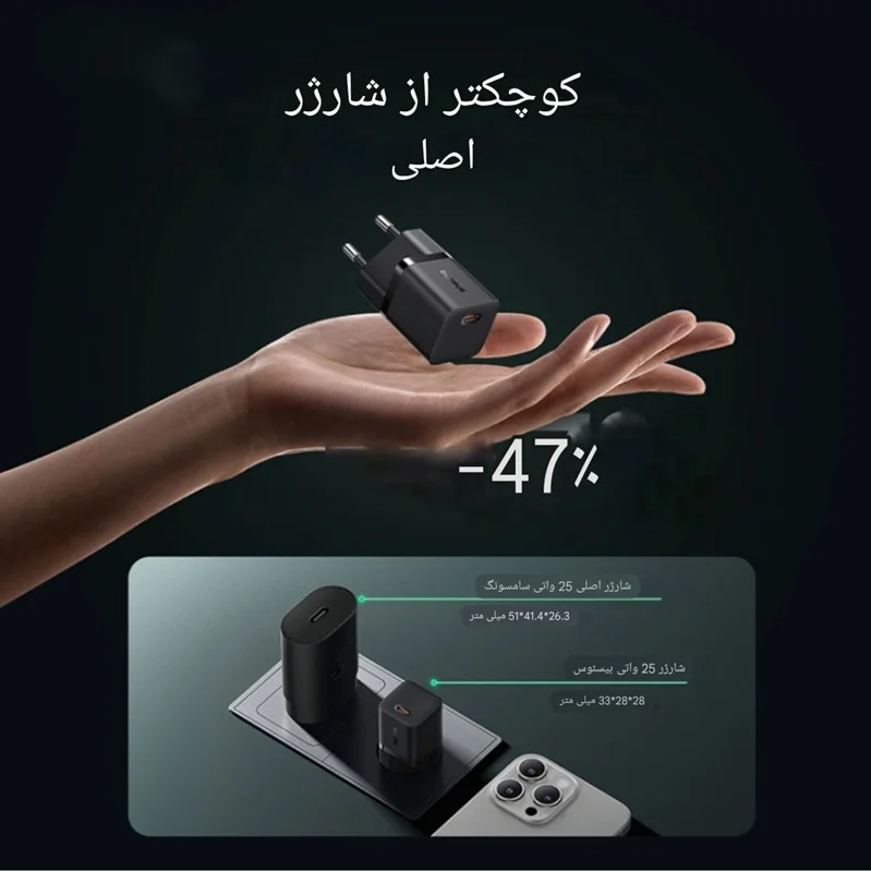 شارژر دیواری 25 وات بیسوس مدل GaN5 mini به همراه کابل تبدیل تایپ سی