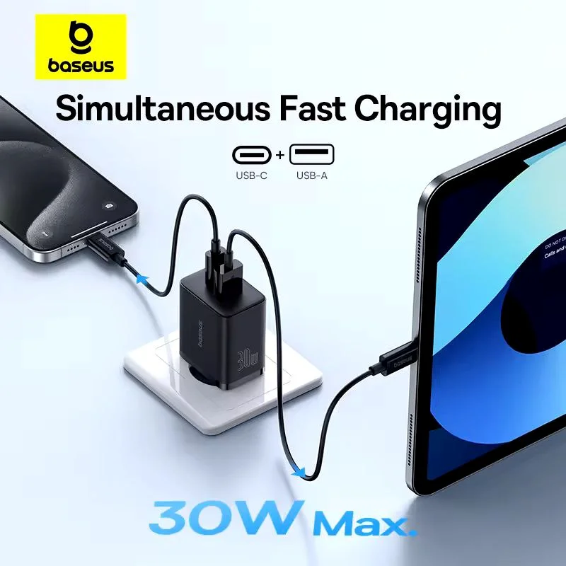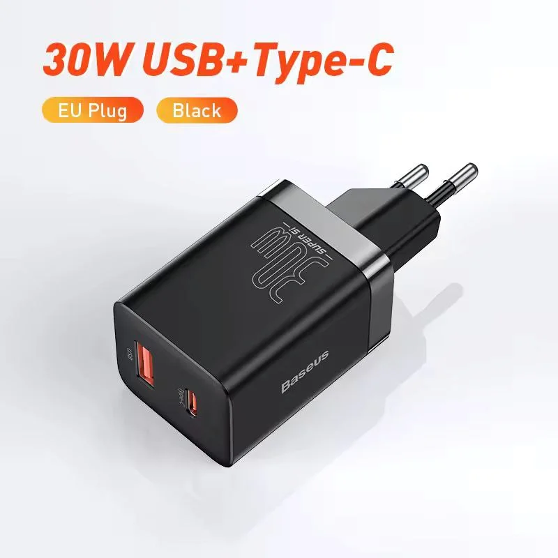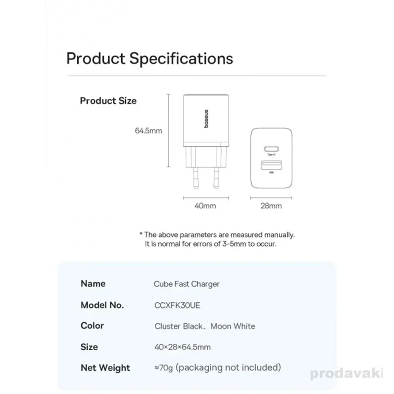 شارژر سریع Baseus Cube C+U 30W محصولی راحت و کارآمد برای شارژ سریع دستگاه های تلفن همراه شما است. این شارژر با طراحی جمع و جور و طراحی مدرن خود یکی از لوازم جانبی ضروری در جیب شما خواهد بود.شارژر سریع Baseus Cube C+U با توان 30 وات به شما امکان می دهد تا به سرعت دستگاه های تلفن همراه مانند تلفن همراه، تبلت، هدفون بی سیم و بسیاری موارد دیگر را شارژ کنید. با فناوری شارژ سریع، می توانید در زمان انتظار صرفه جویی کنید و به سرعت دستگاه خود را به طور کامل شارژ کنید.