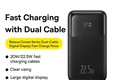 پاوربانک باسئوس مدل Baseus Comet Series PPMD20 مجهز به کابل USB-C (22.5 واتی) و فناوری شارژ فوق سریع انحصاری Baseus است. علاوه بر کابل USB-C، یک کابل لایتنینگ نیز وجود دارد که با تمام دستگاههای دارای این پورت سازگار است. پاوربانک بیسوس به شما امکان میدهد چهار دستگاه را به طور همزمان از طریق کابلهای همراه و پورتها شارژ کنید. پاوربانک باسئوس Comet را از طریق درگاه USB-C میتوانید در حدود 2 ساعت به طور کامل شارژ کنید. به علاوه، یک صفحه نمایش LED داخلی درصد باقیمانده باتری را نشان میدهد و ویژگیهای ایمنی پاوربانک باسئوس از شما در برابر مسائلی مانند جریان بیش از حد و ولتاژ اضافی محافظت میکند.