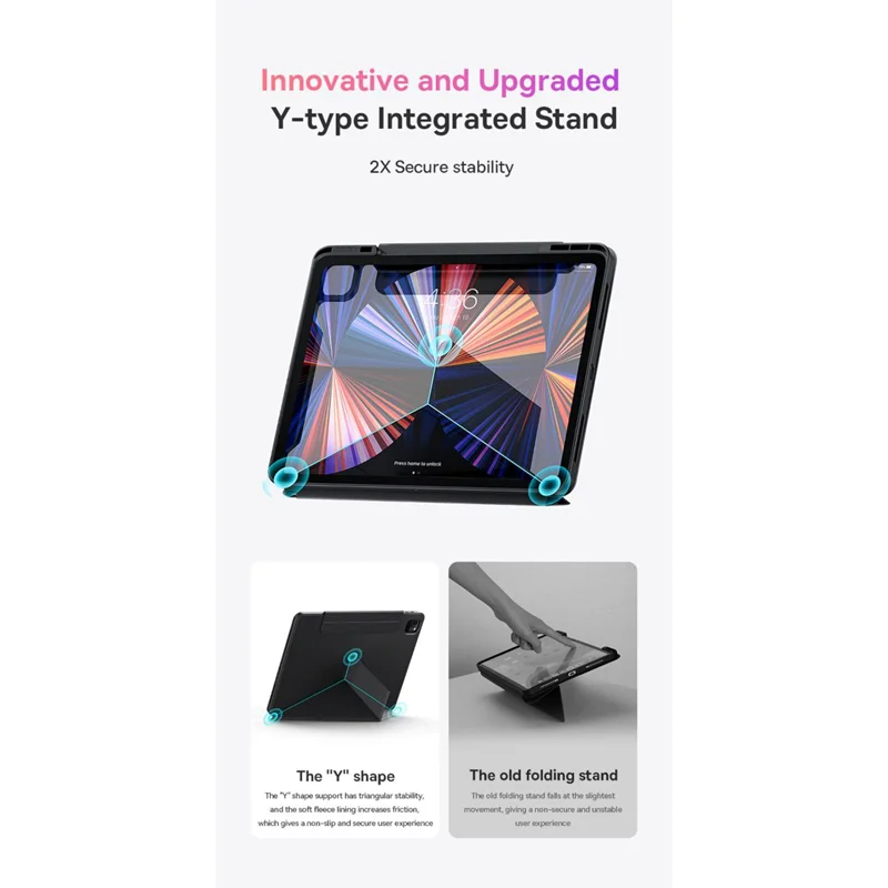علاوه بر مزایای فنی و طراحی، کاور Baseus Minimalist Series Magnetic Case از امکاناتی نیز بهرهمند است که تجربه کاربری را ارتقاء میبخشد. این کاور از تکنولوژی حسگرهای مغناطیسی بهره میبرد که به صورت هوشمندانه دستگاه را خاموش و روشن میکند. این ویژگی نهتنها برای افزایش عمر باتری آیپد کمک میکند بلکه به جلوگیری از اتلاف انرژی ناشی از روشن ماندن بیدلیل دستگاه نیز میپردازد.